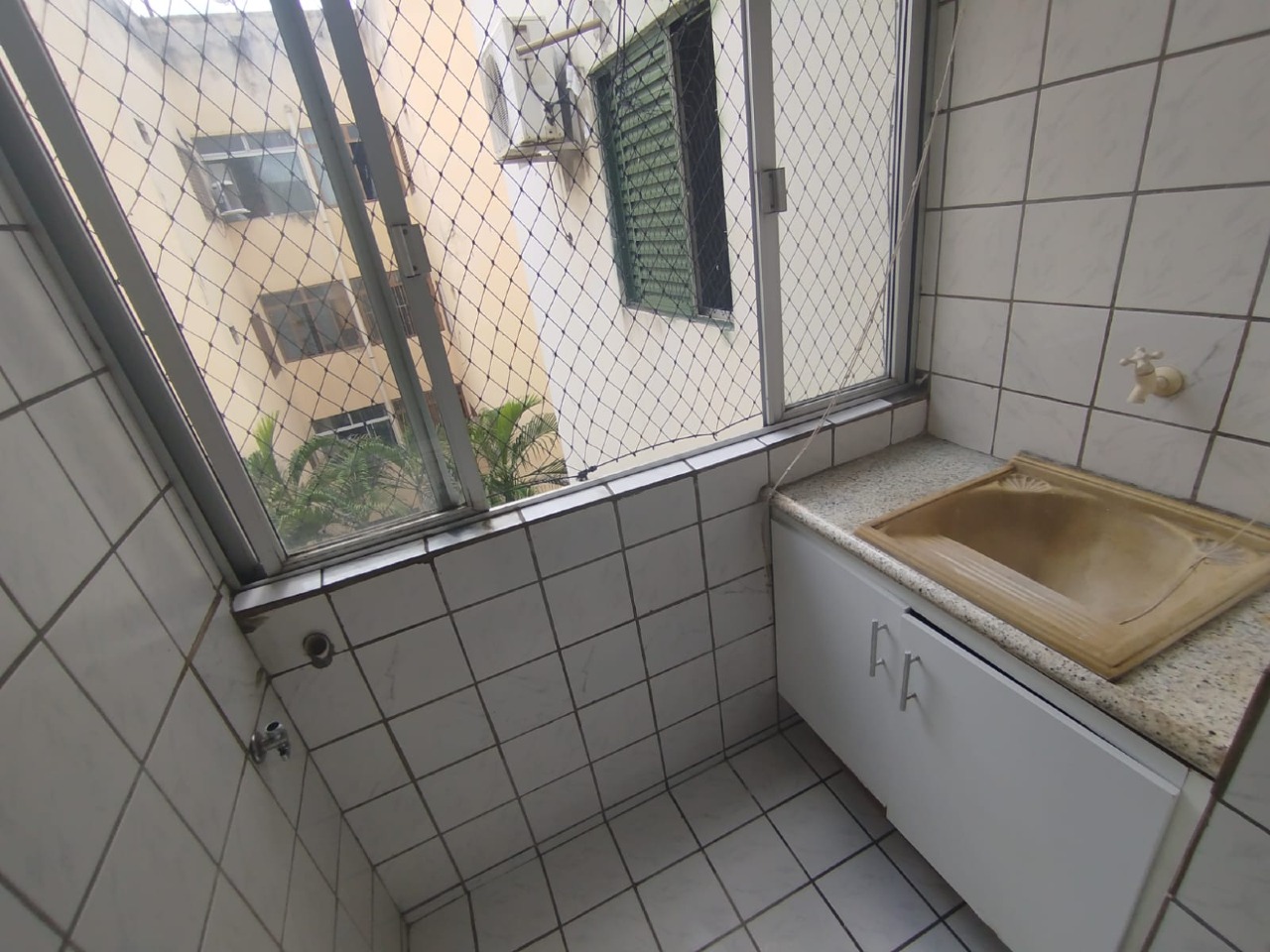 Varanda social com tela de proteção