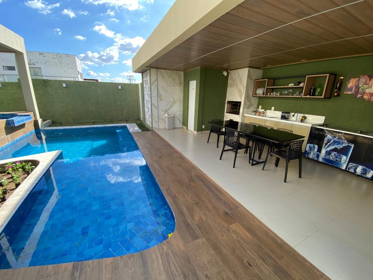 Lavabo, Churrasqueira e 02 piscinas integradas com sistema de aquecimento total.