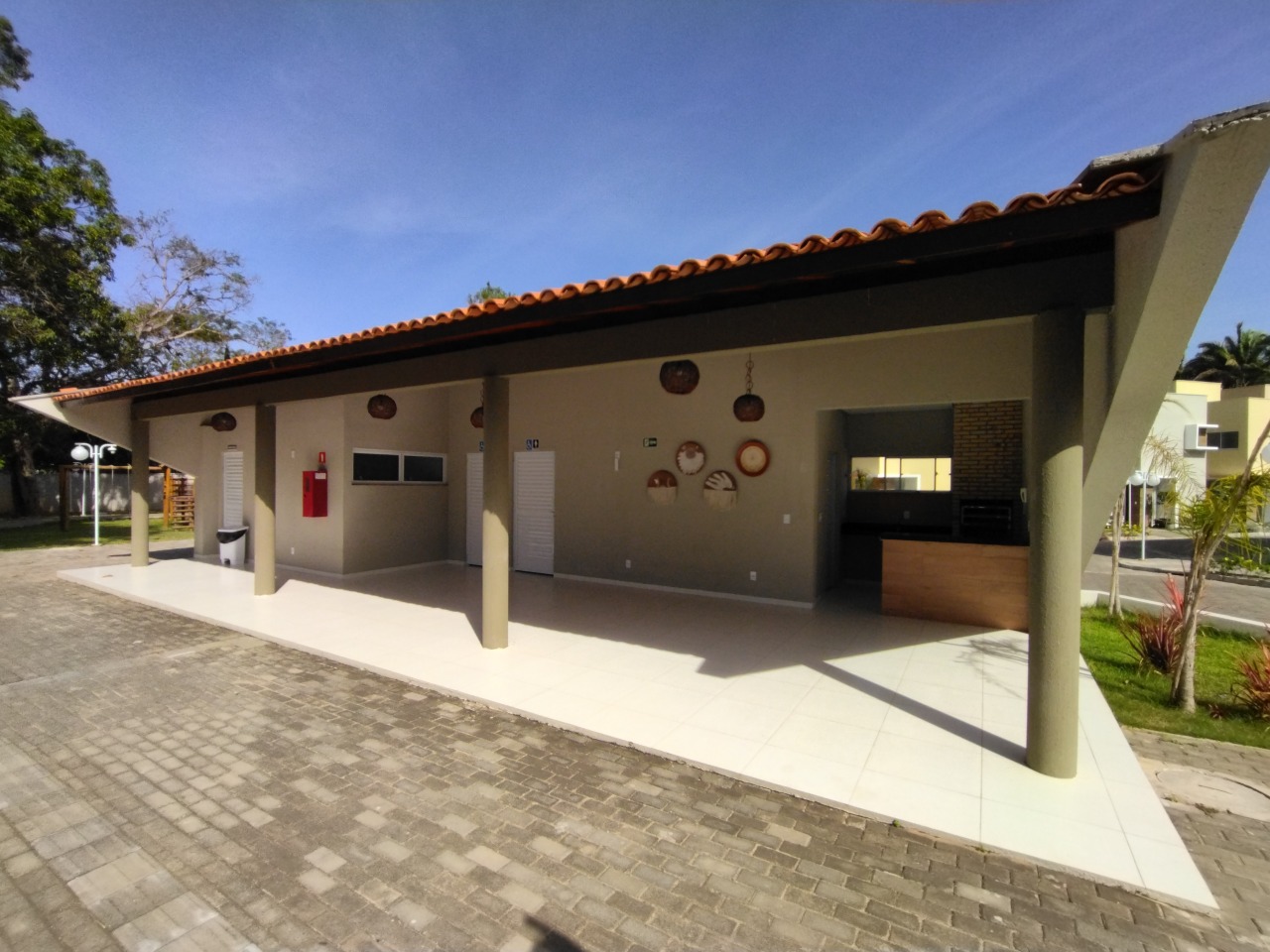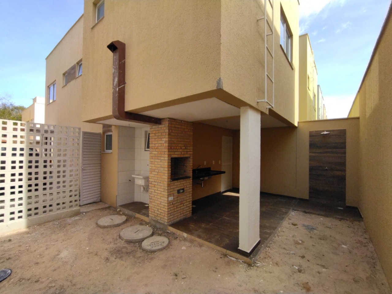 Casa em condomínio duplex com 03 suítes, sala de estar / jantar, cozinha, área de serviço, banheiro social, área de apoio com churrasqueira, pia, chuveiro e 02 vagas de garagem.