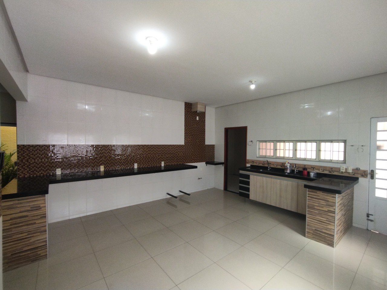 Casa residencial com 03 suítes sendo 01 suíte reversível, sala de estar / jantar, cozinha ampla com armários, área de serviço, despensa, banheiro social, box, jardim de inverno, quintal, 01 depósito, 01 escritório, terraço, churrasqueira com área de apoio, cerca elétrica, portão elétrico, armários na suíte principal e 03 vagas de garagem.