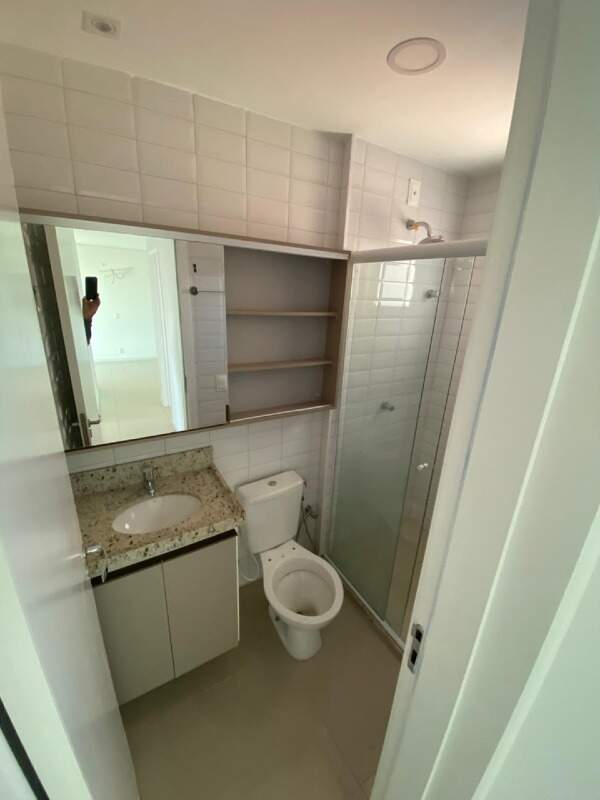 Banheiro social com armário e box