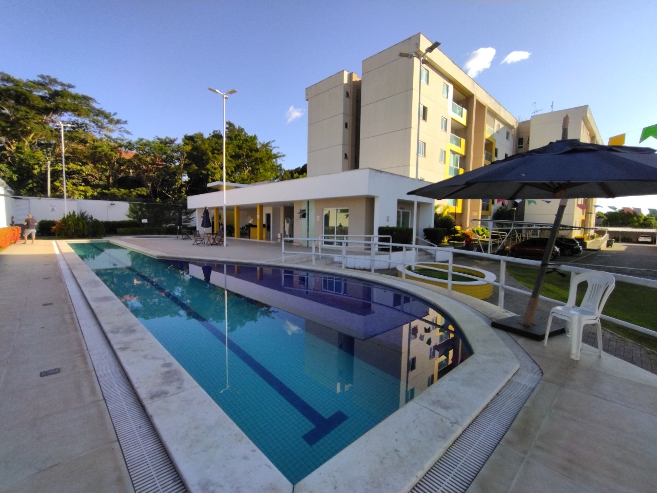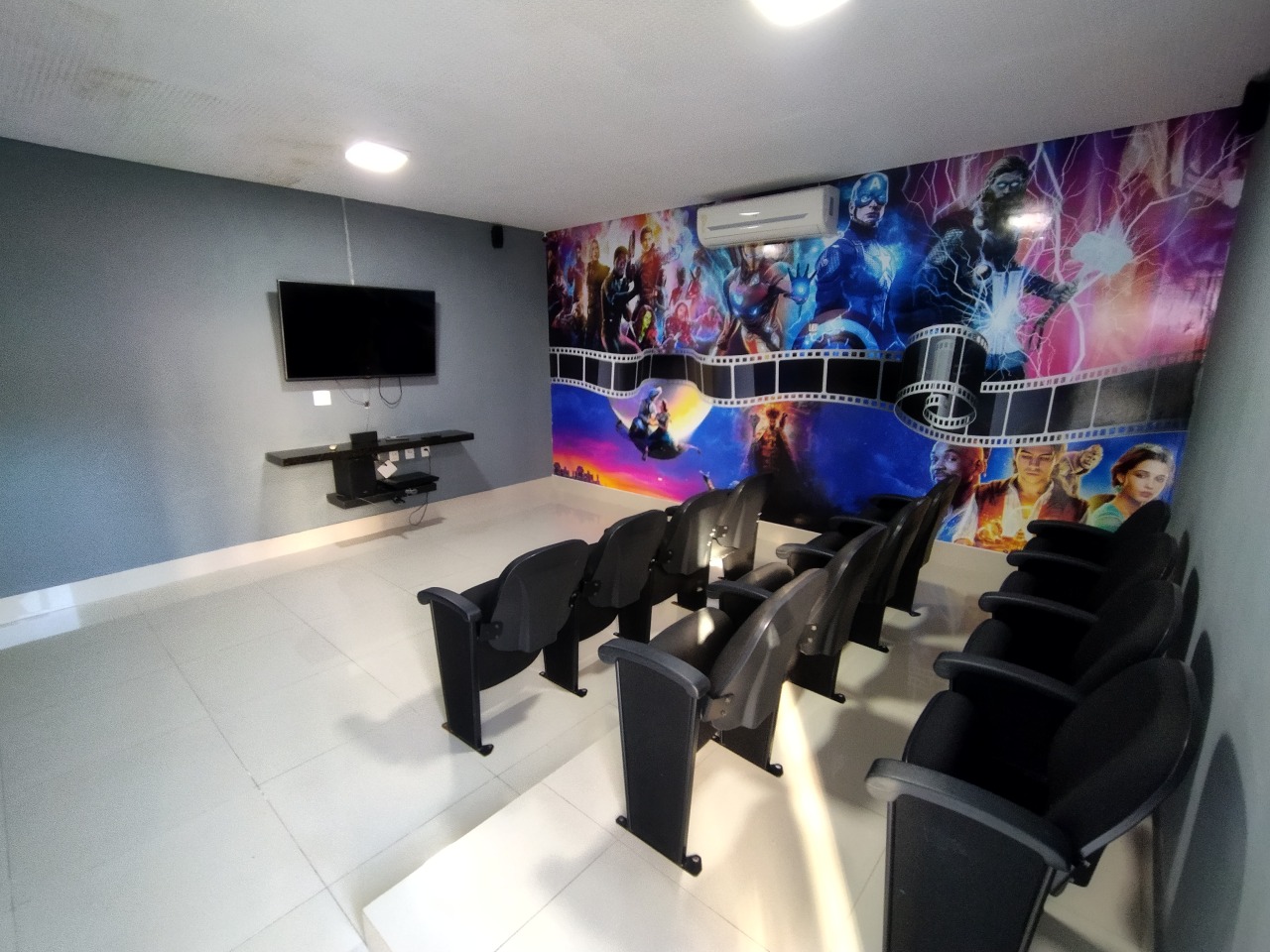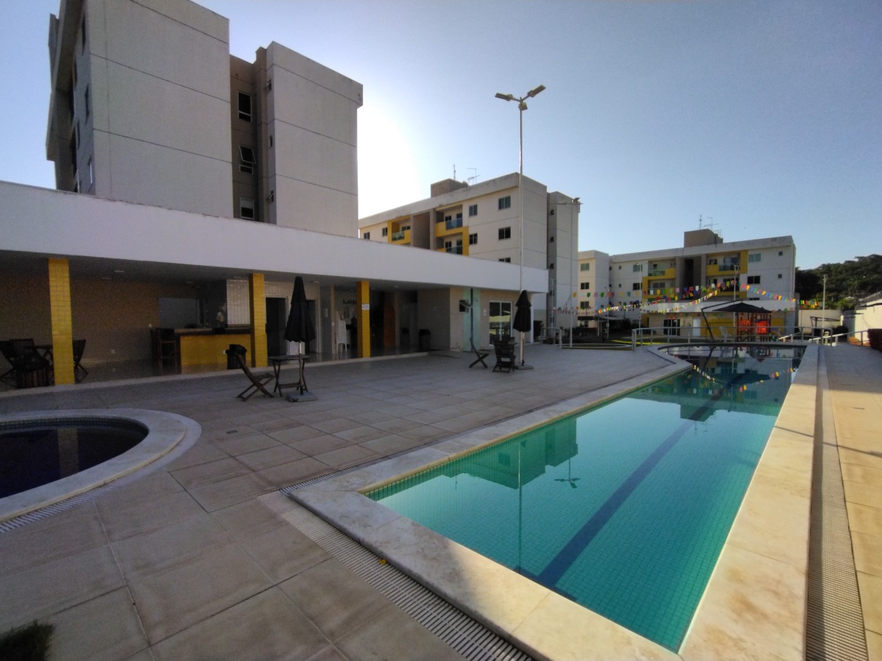 Piscina, Churrasqueira, Salão de festas, Playground, academia e Cinema.