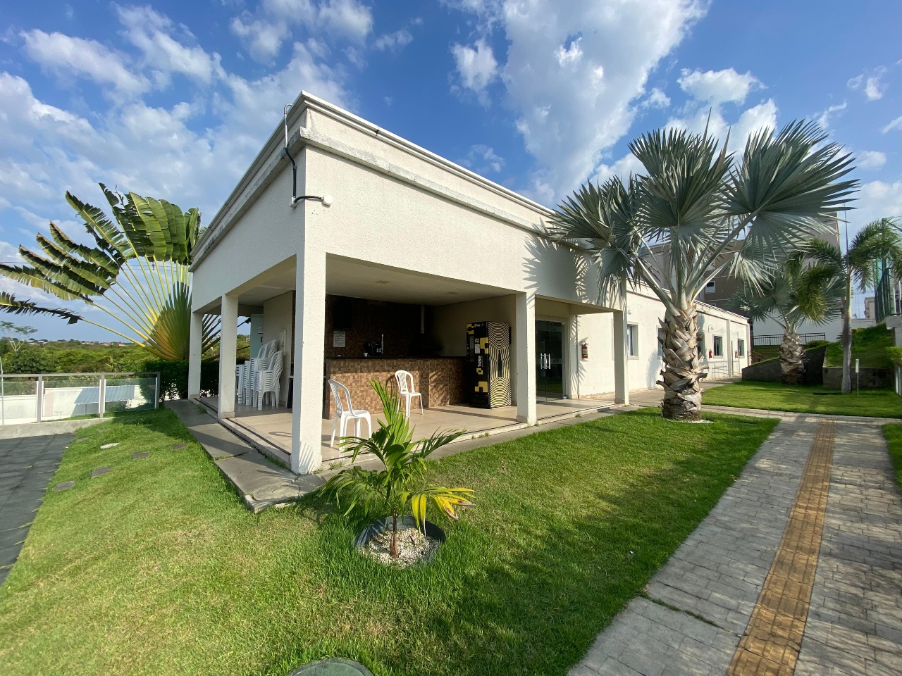 piscina, salão de festas, churrasqueira, playground, salão de jogos e quadra poliesportiva.