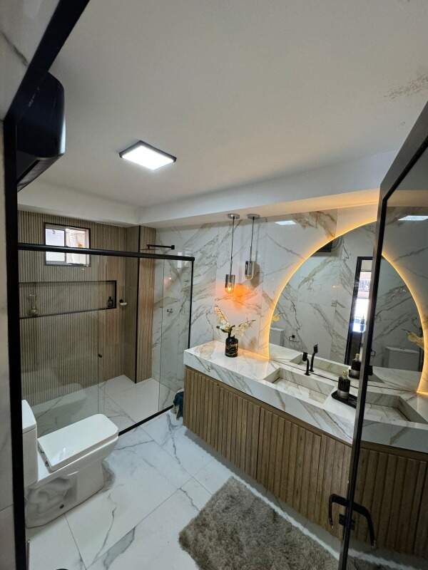 01 banheiro com armário e box